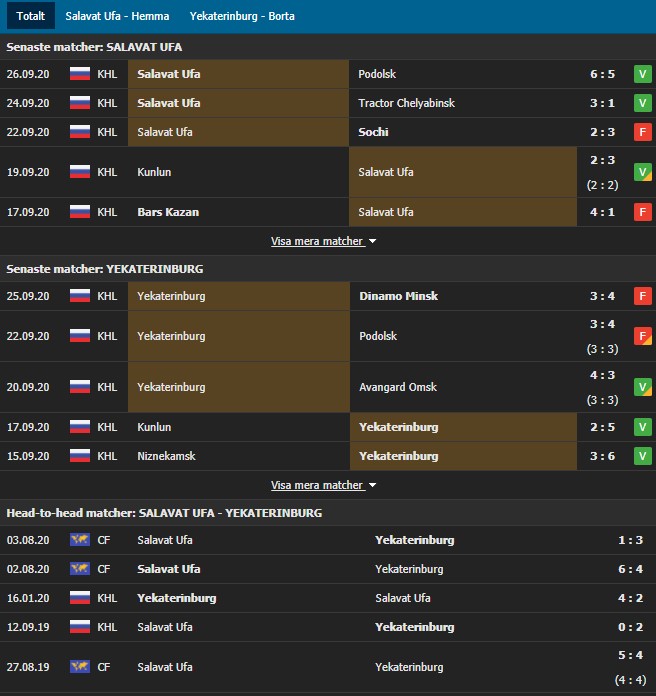 Här ligger värdet på en mållina hos Yekaterinburg. Med 21 mål på sina 5 senaste matcher så är valet enkelt och speciellt när Salavat Ufa släppt in linan i 3/5 senaste matcher och 3 raka inbördes. Här klickas Yekaterinburg Över 2.5 Mål till 1.52 hos Bethard. Spelet exkluderar övertid.